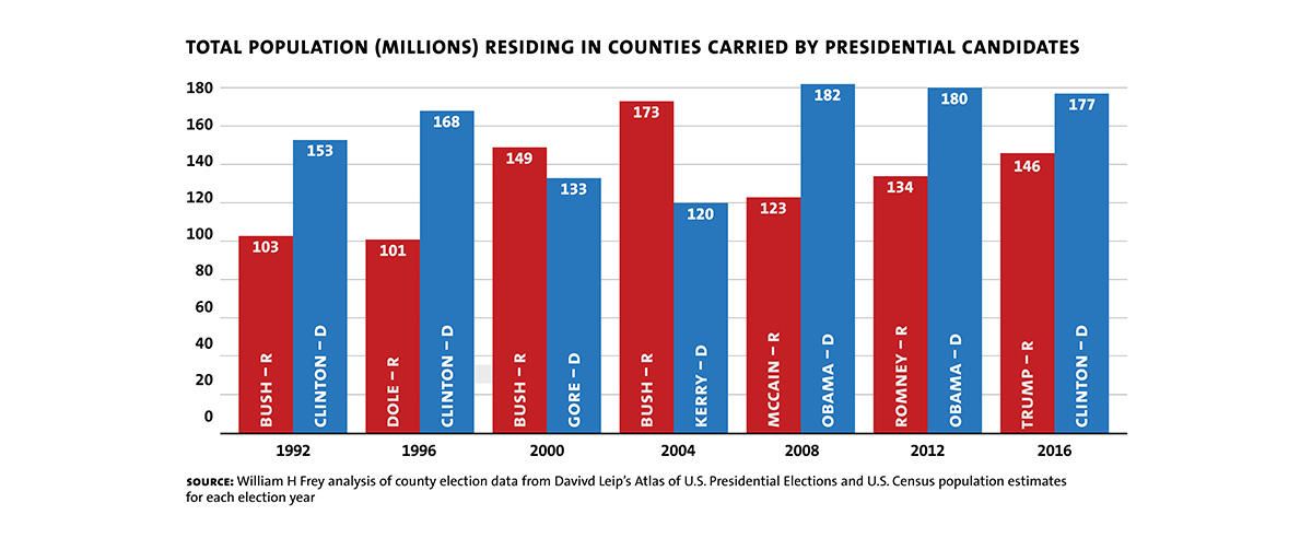 Trump prevailed in the Electoral College by successfully navigating precarious rural-urban balances in key swing states, taking small areas by large margins. This pattern is almost unprecedented: Trump is the first winning candidate since at least 1992 to carry a minority of the nation's combined county populations.